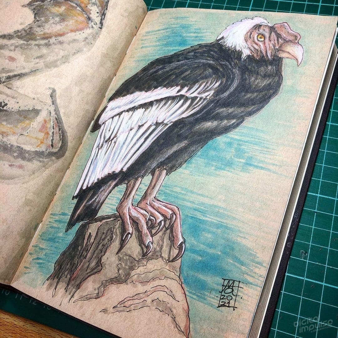 I had actually illustrated a Condor in flight back in September last year (2020) and shared it on Instagram, but unfortunately I didn’t get around to posting it up here on the website, so I take a look. This particular specimen is a female, as it lacks the comb or caruncle on its beak and crown.